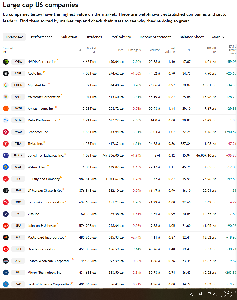 | 2026년 2월 10일 금융시장 지표와 미국증시 시가총액 순위 (0) | 2026.02.11 |