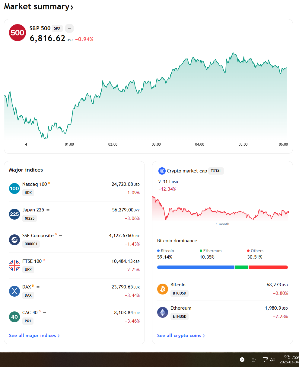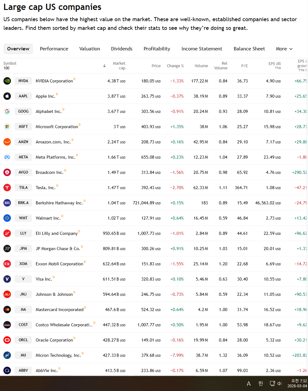 | 2026년 3월 4일 금융시장 지표와 미국증시 시가총액 순위 (0) | 2026.03.05 |