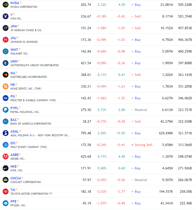미국증시 시가총액 순위입니다.