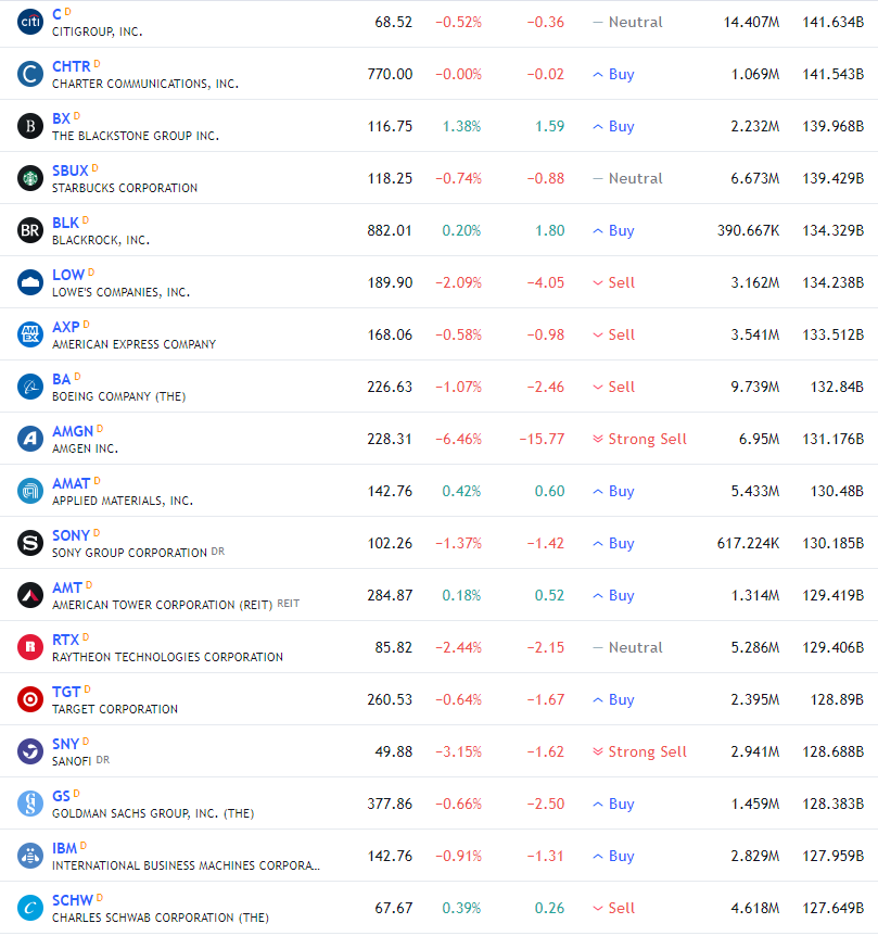 2021년 8월 4일 금융시장 지표와 미국증시 시가총액 순위
